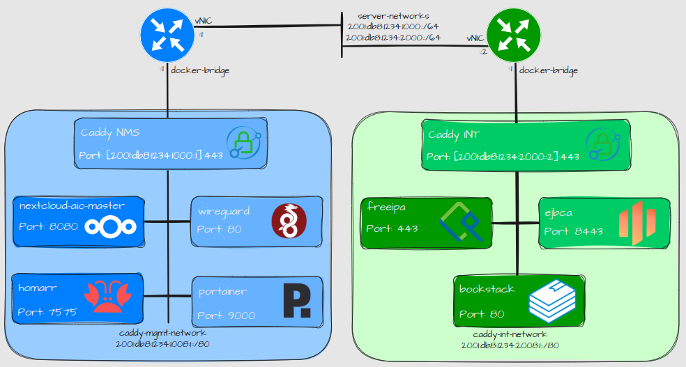 I’m planning to use a Caddy container per network segment. Right now I only have for Network and Management services but planning to use one for internal services as well.