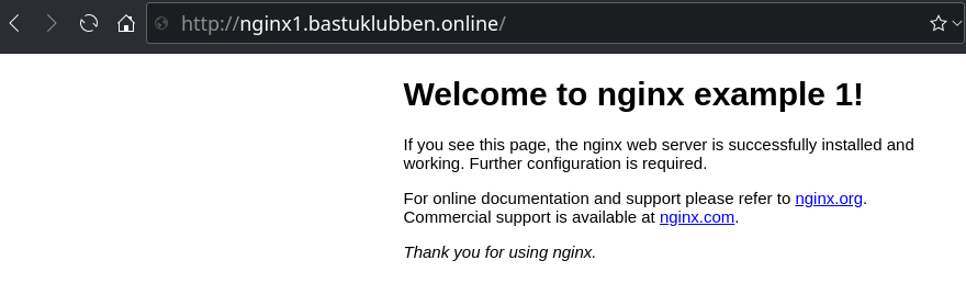 HTTP requests going to nginx1.bastuklubben.online will be forwarded by the caddy container to the nginx1 container