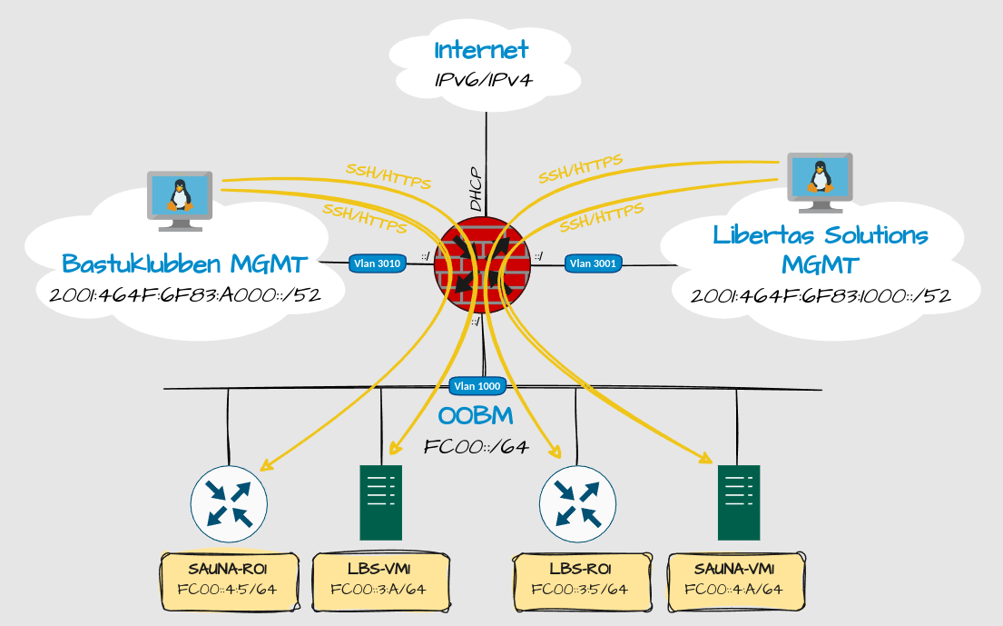All servers and network equipment will have a dedicated OOBM MGMT interface in VLAN 1000. From there I can manage both SAUNA and LBS without having to switch VLANs.