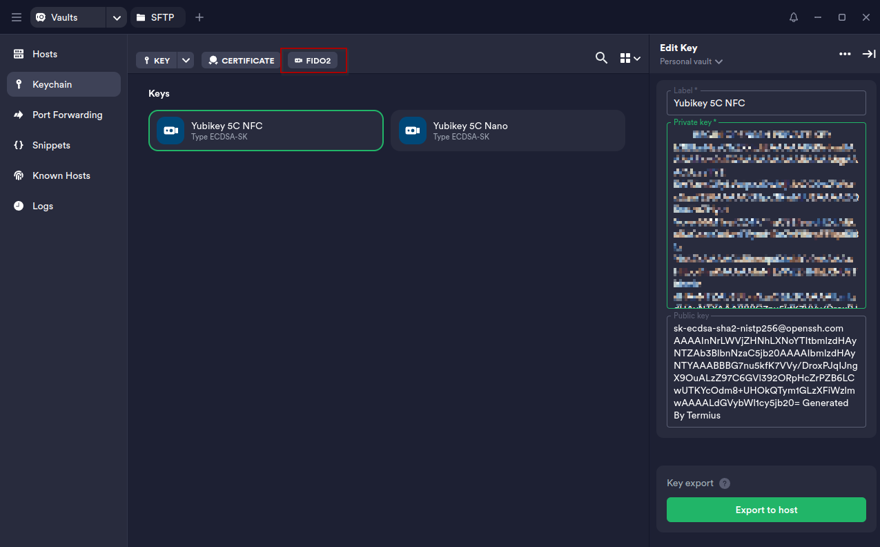 Then you can export the public key to a host through Termius. I once did a post about how to do this manually, but Termius just streamlines this workflow so perfectly!
