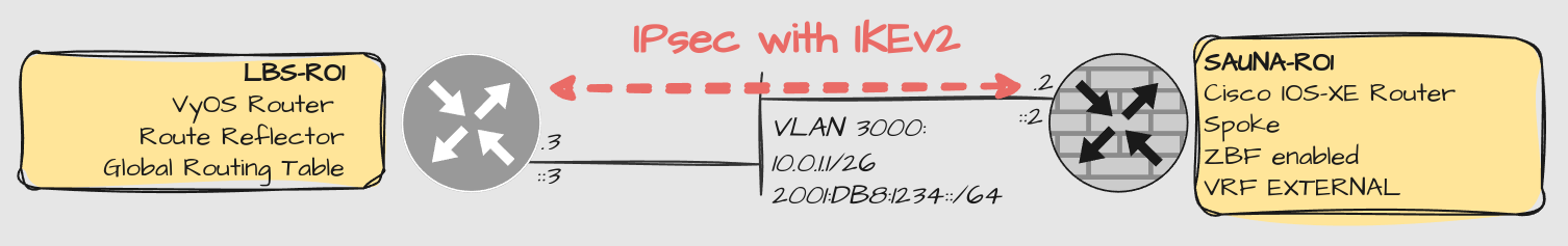 Therefore I’m going to demonstrate how to configure a VyOS hub and a Cisco IOS-XE spoke to perform MPLSoDMVPN.